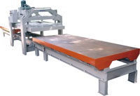 | The 1D-2T system represents one of our trade-mark products. It consists a fixed frame with one upper platen and two additional motorized platens. The motorization allows the two platens to travel alternately in and out of the press frame and guarantees the operators maximum accessibility. Panel preparation, are simple and fast. |